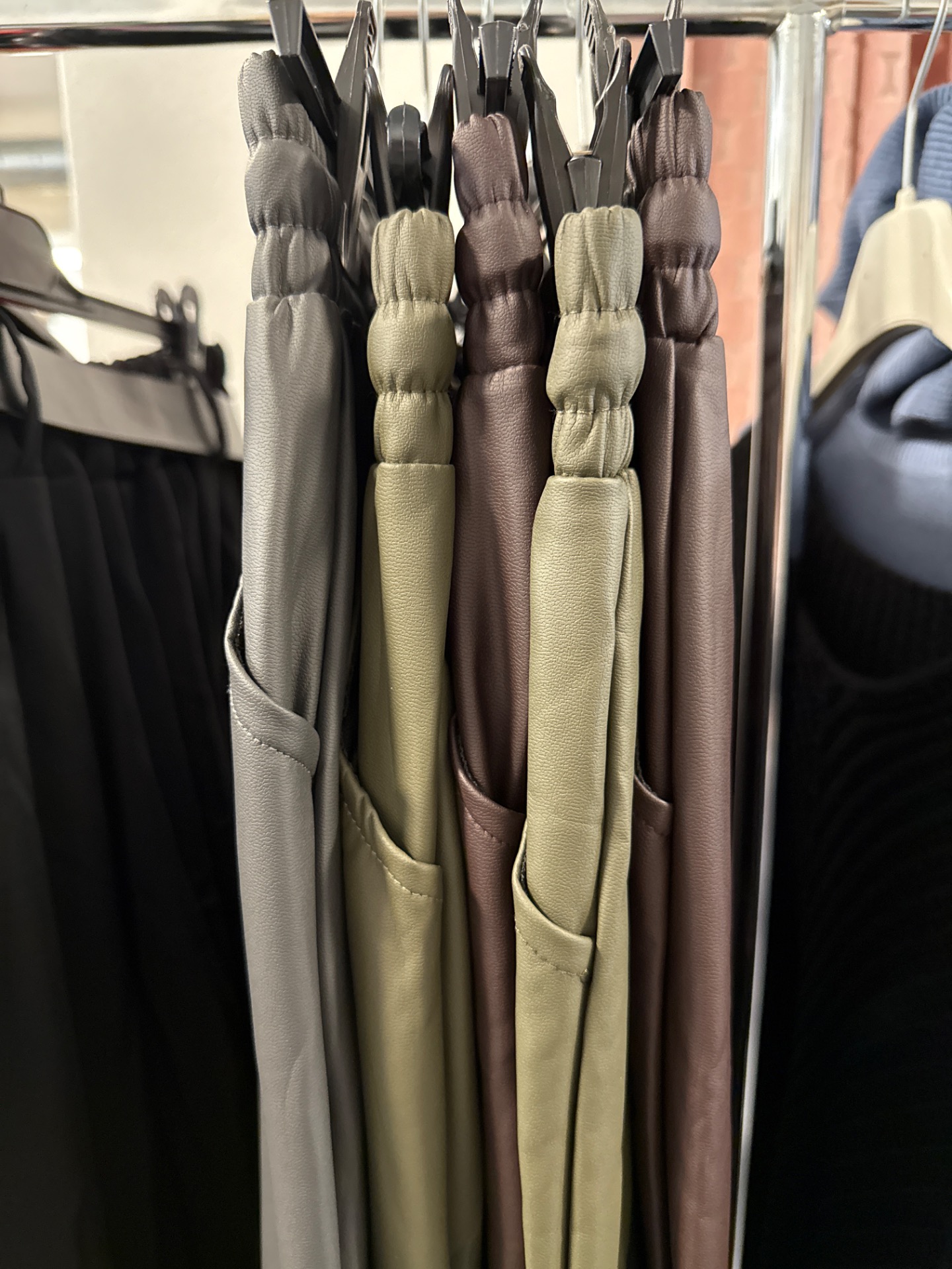nezateplené koženkové kalhoty buggy střih, nohavice zúžené do gumy
