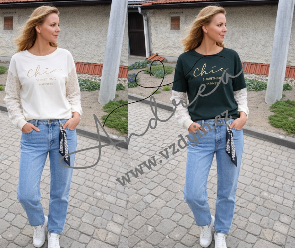 úžasný máslový materiál - rukáv z krajky - opravdu parádní kousek v mnoha barvách - velikost oversize - na fotce změřeno