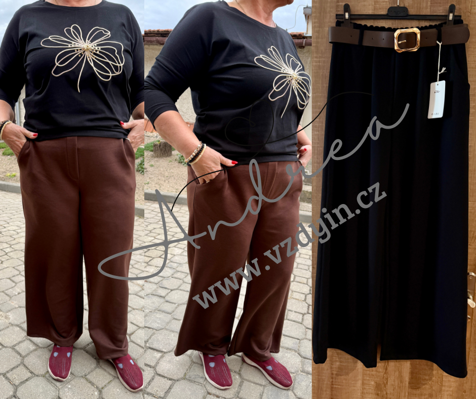 Máslové kalhoty se širokými nohavicemi - v pase pružná guma - 35 až 65 x2, délka 102cm