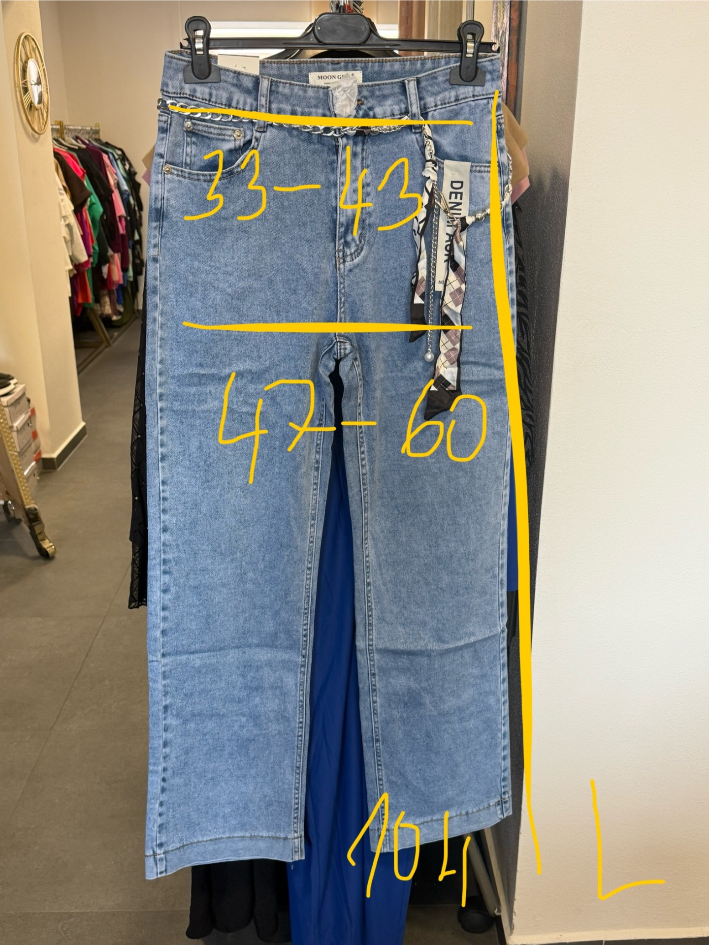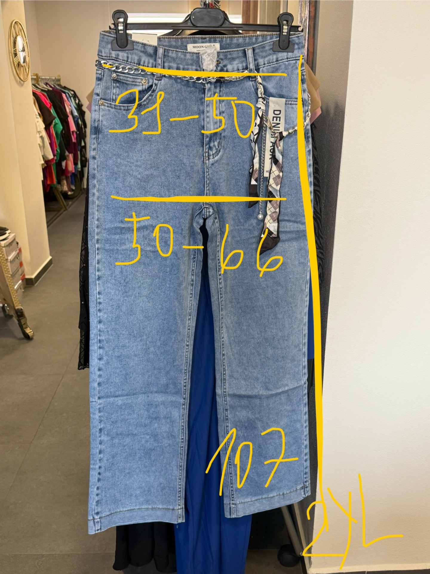 Pružné máslové rifle ve velikostech L, XL, 2XL, 3XL, 4XL - míry na fotkách