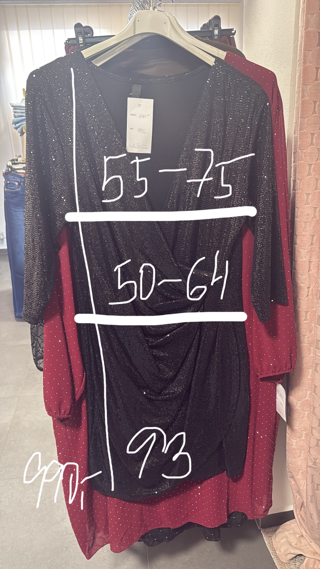Třpytivé šaty ve větší velikosti - míry na další fotce