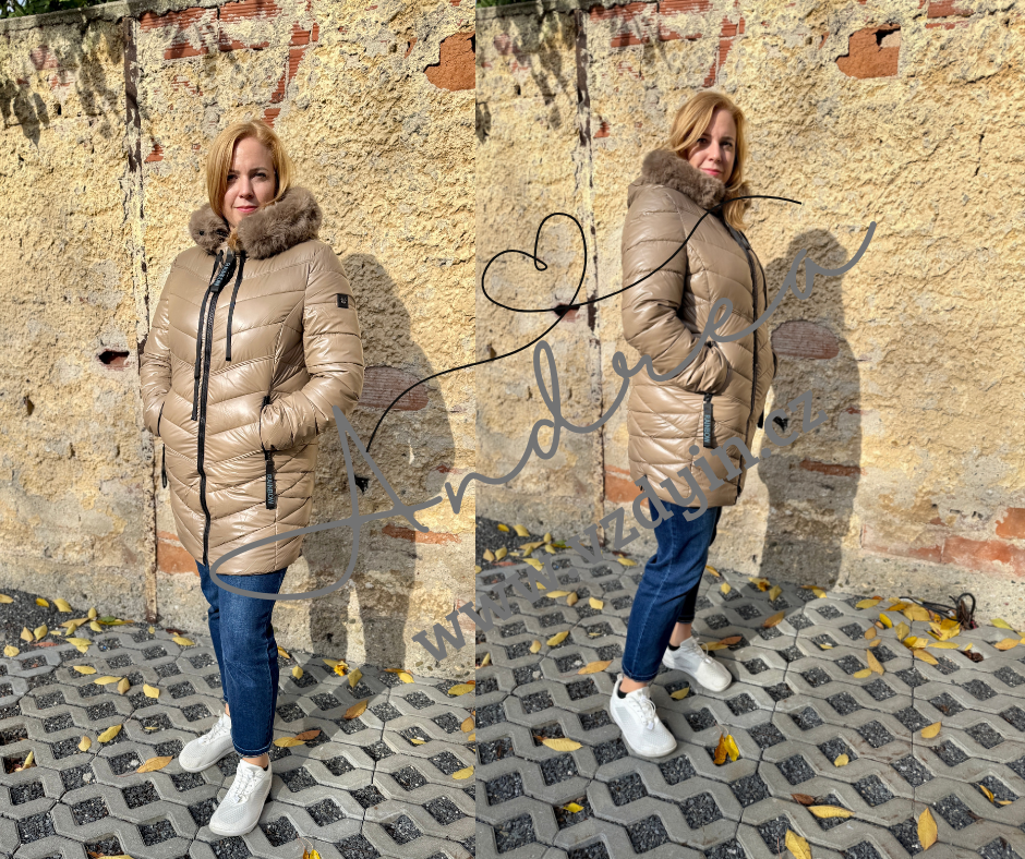 Nádherná zimní bunda - větší velikosti - na sobě mám 3XL - kožíšek na kapuci se dá odepnout - míry na další fotce